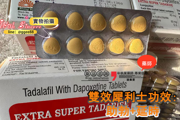 在眾多壯陽藥產品中,雙效犀利士 Super Tadarise 以「一顆同時解決勃起障礙(ED)與早洩(PE)」的雙重功效,在市場上獲得極高關注。它結合了 他達拉非(Tadalafil)40mg 與 達泊西汀(Dapoxetine)60mg 兩大活性成分,不僅能提升勃起硬度與持久度,還能有效延長射精時間,讓性愛過程更加持續且滿意。對於想一次解決「硬度不足+太快結束」困擾的男性來說,Super Tadarise 無疑是一款高效且實用的選擇。