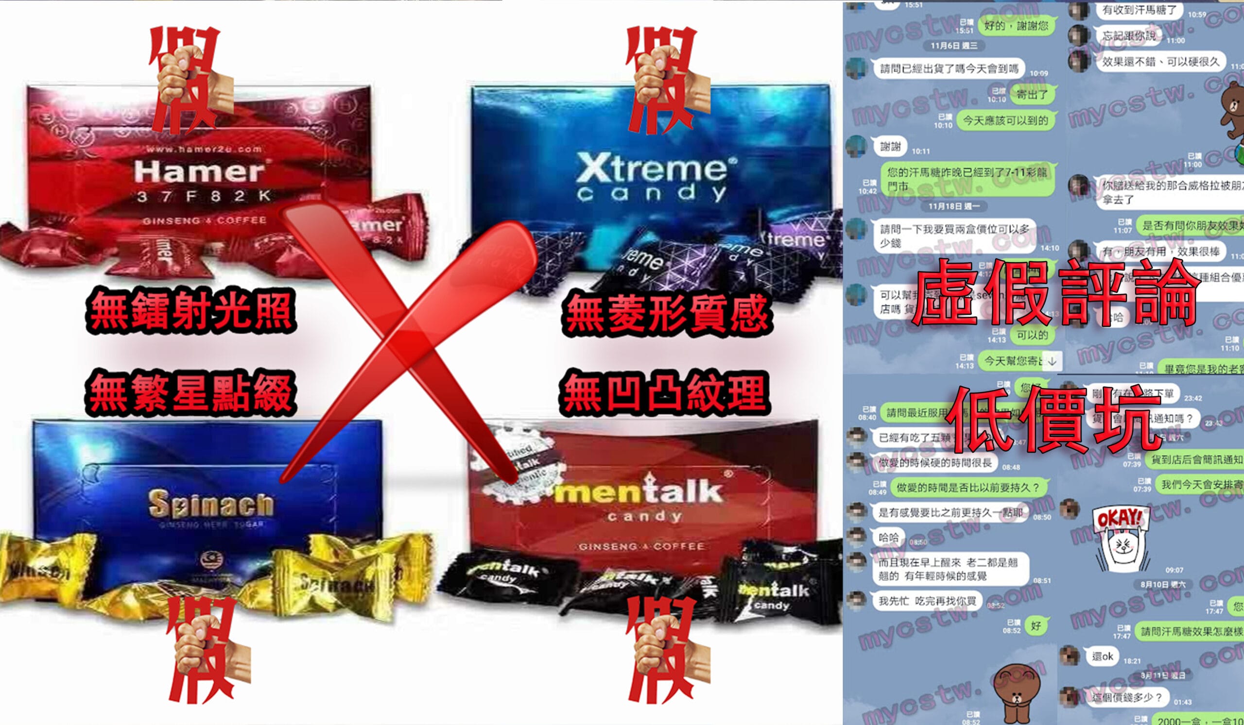 市場上假冒汗馬糖的形式多樣,其中最常見的有三種: