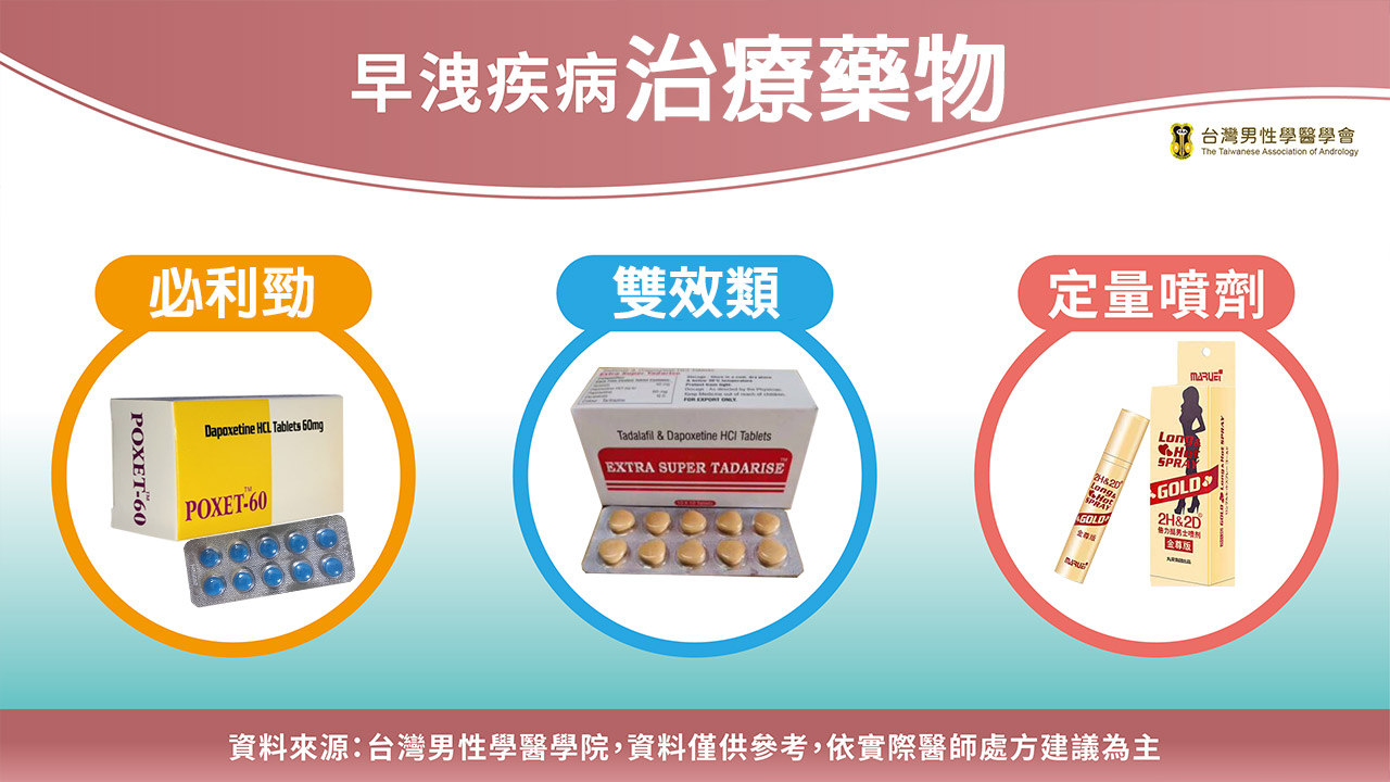 藥物治療是目前最常見且有效的早洩解決方案,主要包括以下三類: