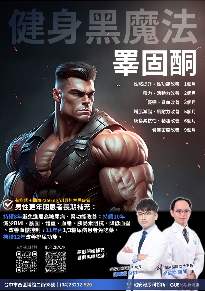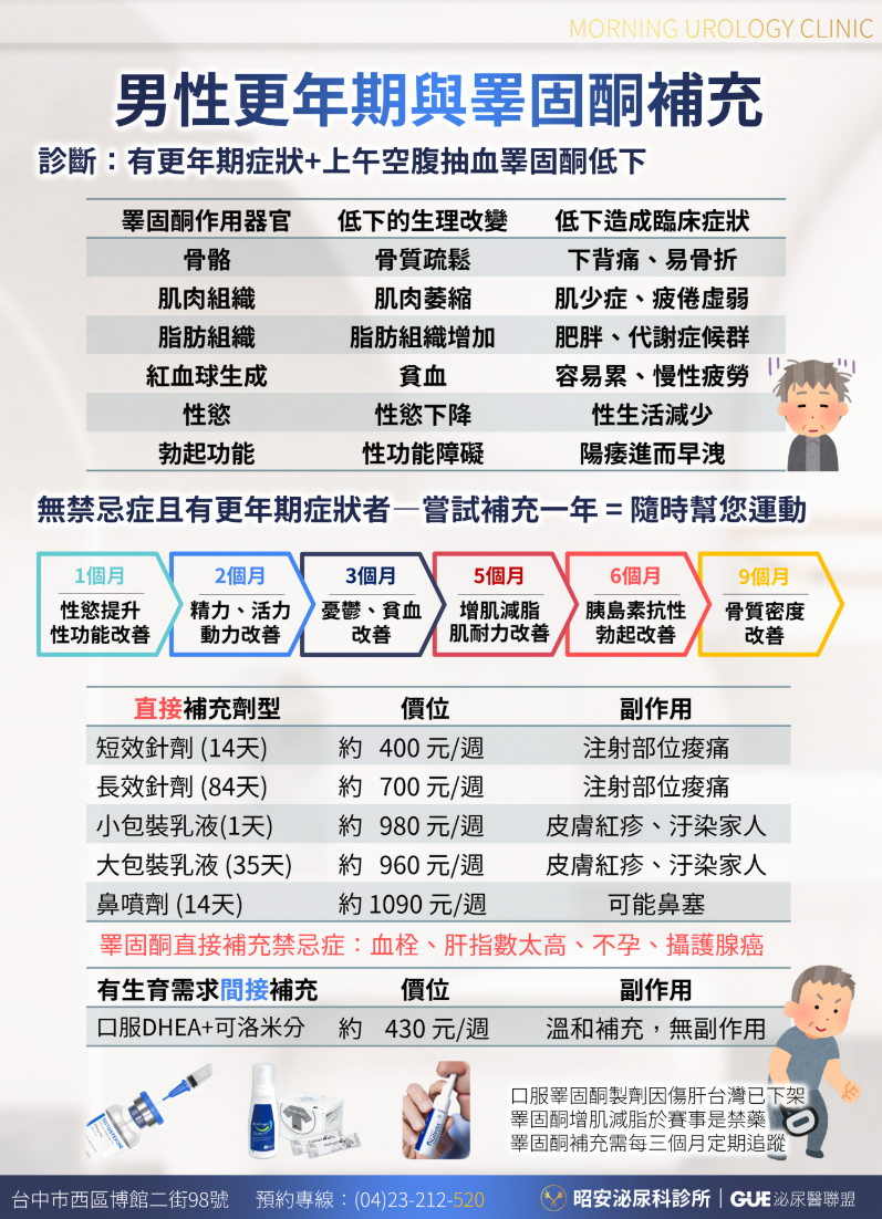 • 長期出現性慾下降、勃起功能異常、慢性疲勞、肌肉減少等症狀者