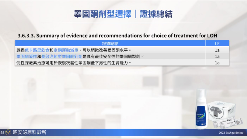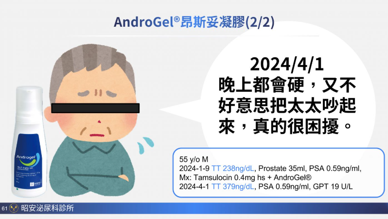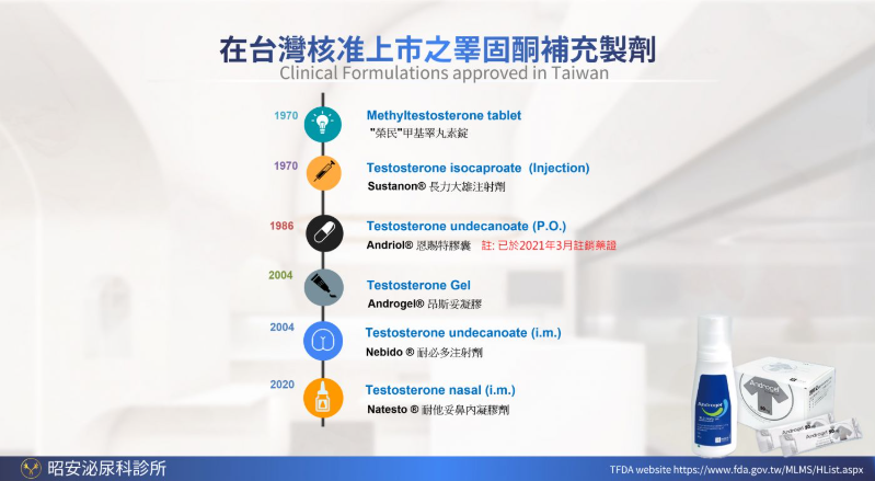 • 使用期間應定期追蹤血中睪固酮濃度、肝腎功能與前列腺狀況。