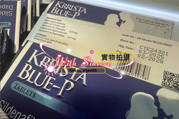 印度巔峰藍P KRRISTA BLUE-P 雙效片結合110mg西地那非+110mg達泊西汀的雙效配方,有效改善勃起功能障礙與早洩問題,一次解決「不夠硬」與「太快射」兩大困擾。由印度老牌藥廠 Ether Pharma 出品,藥效強勁、品質穩定,是重度性功能障礙男性的高效處方選擇。