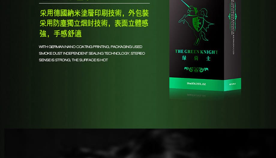 法國綠騎士持久液 以天然植物精華為主,迅速吸收,效果強勁。輕鬆一噴,增強性欲,延長性愛持久度,讓伴侶獲得更長時間的滿足。重塑男性自信,助您重振雄風,享受更加充實的親密時光。