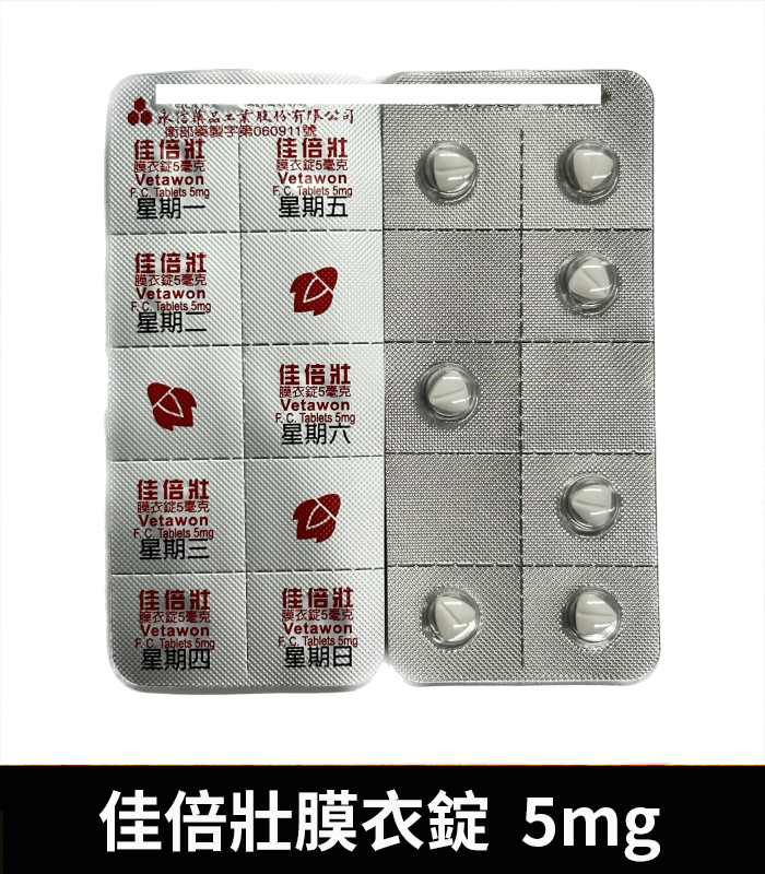 | 商品名稱 | 佳倍壯 Vetawon 5mg 膜衣錠 |