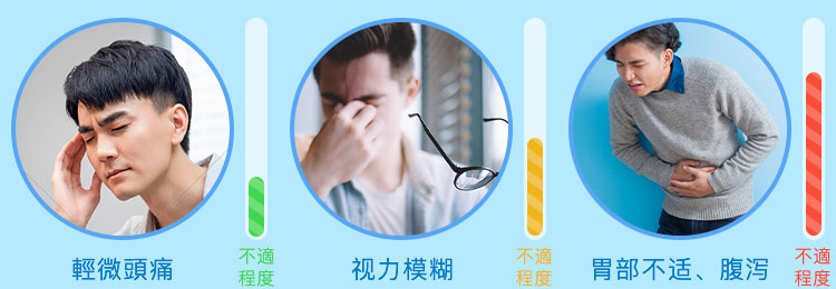 🤢 常見反應 約 37% 用戶出現頭暈、臉紅、鼻塞、消化不良,通常 12 小時內自然緩解